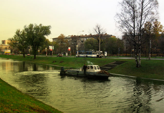 We're starting from the Golovinsky Bridge that marks the place where Chernaya Rechka issues from the Big Nevka. The present bridge with granite obelisks with Neptune's tripods dates back to 1976 (eng. Dvorkin, arch. Ivanov ). It owes its name to the Golovin Mansion next to it.