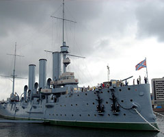 The Cruiser Aurora, moored at Petrovskaya Embankment, in front of the Naval School named after Admiral Pavel Nakhimov, is not only a monument to Russian shipbuilding, but also a symbol of the Soviet epoch.